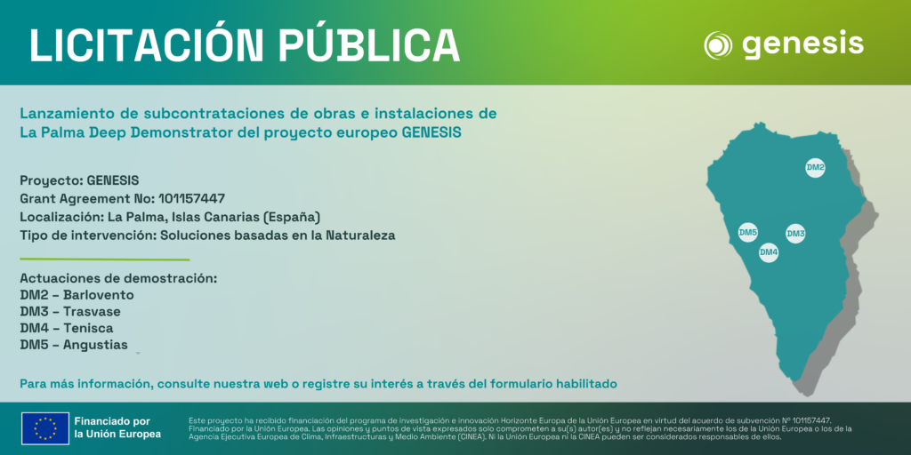 La licitación de actuaciones para la construcción e instalación de soluciones basadas en la naturaleza en el Deep Demonstrator de La Palma se resumen en los siguientes puntos: