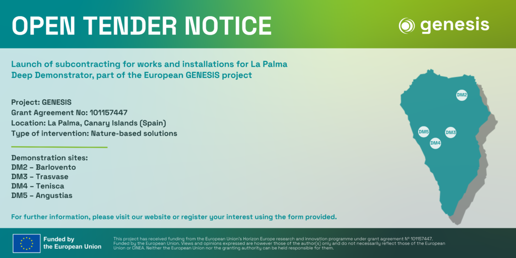 The tender for the construction and installation of nature-based solutions in the Deep Demonstrator in La Palma can be summarised as follows: