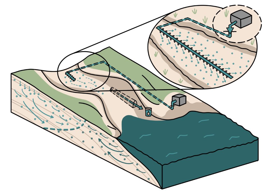 El objetivo es utilizar estas aguas residuales tratadas para recargar el acuífero, mejorando tanto su cantidad como su calidad. Los posibles métodos de recarga, pendientes de validación por las partes interesadas locales, incluyen la recarga indirecta (para uso urbano, agrícola, recreativo o medioambiental), la percolación localizada y la inyección directa.